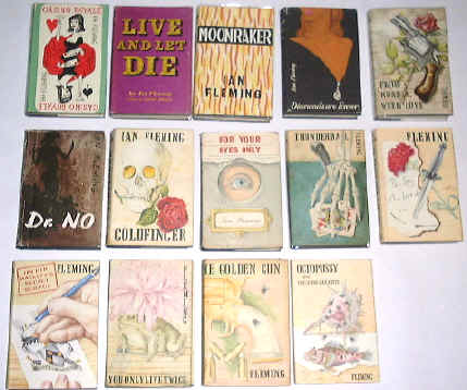 UK Hardbacks published by Jonathon Cape. Seen here in order of publication. Casino Royale is seen here in its second cover variation as I don't have a first edition of this one. Also although almost exactly the same Diamonds are Forever is borrowing its jacket from the book club edition shown in the picture below |
