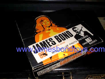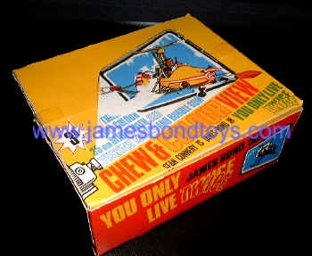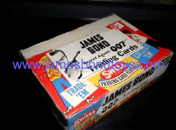 THUNDERBALL - SOMPORTEX Gum cards, made by Somportex and issued for the movie Thunderball. Seen here is the original counter display box which holds 72 packets, each packet is either crimp sealed or folded and held with tape. They contain three black & white cards and a stick of gum (don't be tempted to eat it!)