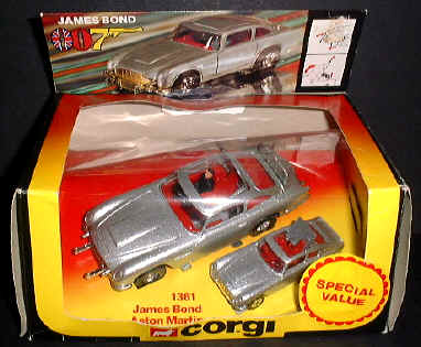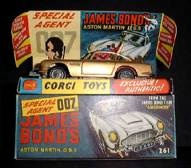 ![]() Last of the UK Corgi 007 models, seen here in James Bond and lost licence Aston Martin boxes |