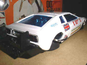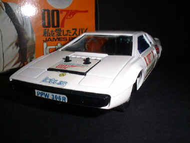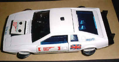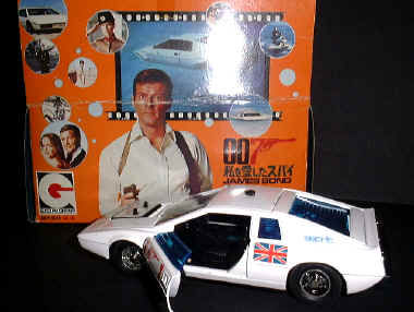 One of the coolest die cast 007 toys around. Made in 1977 it features rubber tyres that turn under and wings come out. A full interior with opening doors and boot (trunk) . Missiles fire from the hood and the rear bumper is removed and a full propulsion unit substituted - way cool! |