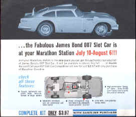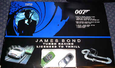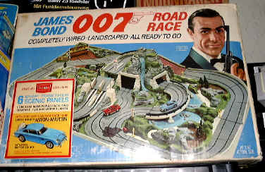 Up ] James Bond Toys ] Buyer BEWARE ] Buying Tips ] BOOKS ] 007 Briefcases ] Cards & Candy ] Die-Cast Cars ] DOLLS ] Bond Games ] Gilbert Toys ] Guns ] Imperial Toys ] Jewellery ] KITS ] Miscellaneous ] Kit Cars ] Other Cars ] [ Slot Cars ] Tin Cars ] Multiple Toymakers ] Paper & Ephemera ] Pens & Odds ] Posters ] Props ] 007 Shaving ] Records ] Revlon ] SD Studios ] Shoes & Clothing ] Spystuff ] Voit Scuba Gear ] Volcano Playset ] Watches & Clocks ] Walki Talkies ] DAD Aston Pedal Car ] Shop & Counter Displays ] Trevor Boddington ] Meet Nick ]