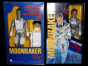Here are two different Commander James Bond dolls. On the right is the regular figure which came in a spacesuit with armbands and boots. On the left is the Cepi Rati version only produced in Italy. This version is quite spectacular as he come with the contents of the above doll and also a helmet with drop down visor, gun, belt, front pack, large backpack with gas pipes and control handles (for space maneuvering). Lucky old Italy!