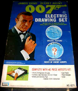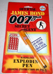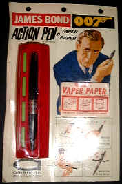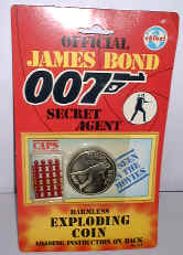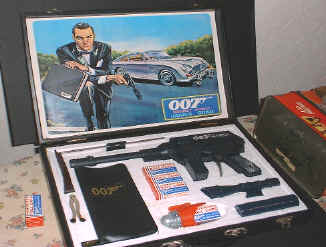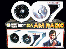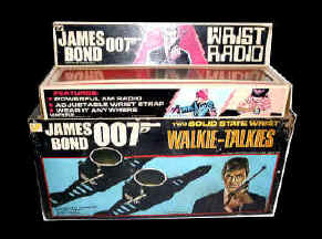 This company produced some very nice 007 toys in the 1970's. Seen here are the walkie talkie set and a rare version of the wrist radio which has a built in speaker. |