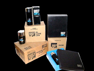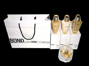 Bond, James Bond Le Parfum Made in 1997 this range of products includes perfume, body lotion, shampoo and eu de toilette. There is also a mini perfume in the range. Seen here is the posh carrier bag from the range launch |