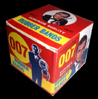 James Bond Rubber Bands Unlicensed but uses artwork from "You Only Live Twice". Very unusual attempt to improve the sales of Rubber bands. Box is only about 3 inches square. |