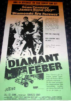 Up ] Dr No Posters ] FRWL posters ] Goldfinger Posters ] Thunderball Posters ] You Only Live Twice ] Casino Royale ] OHMSS Posters ] [ Diamonds Are Forever ] Live & Let Die ] Golden Gun posters ] The Spy Who Loved Me ] Moonraker Posters ] For Your Eyes Only ] Octopussy Posters ] Never Say Never Again ] A View to a Kill ] Living Daylights ] License to Kill ] Goldeneye ] Tomorrow Never Dies ] TWINE Posters ] Double Bills ] Promotional Posters ]