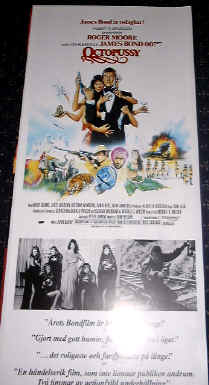 Up ] Dr No Posters ] FRWL posters ] Goldfinger Posters ] Thunderball Posters ] You Only Live Twice ] Casino Royale ] OHMSS Posters ] Diamonds Are Forever ] Live & Let Die ] Golden Gun posters ] The Spy Who Loved Me ] Moonraker Posters ] For Your Eyes Only ] [ Octopussy Posters ] Never Say Never Again ] A View to a Kill ] Living Daylights ] License to Kill ] Goldeneye ] Tomorrow Never Dies ] TWINE Posters ] Double Bills ] Promotional Posters ]
