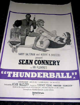 Up ] Dr No Posters ] FRWL posters ] Goldfinger Posters ] [ Thunderball Posters ] You Only Live Twice ] Casino Royale ] OHMSS Posters ] Diamonds Are Forever ] Live & Let Die ] Golden Gun posters ] The Spy Who Loved Me ] Moonraker Posters ] For Your Eyes Only ] Octopussy Posters ] Never Say Never Again ] A View to a Kill ] Living Daylights ] License to Kill ] Goldeneye ] Tomorrow Never Dies ] TWINE Posters ] Double Bills ] Promotional Posters ]