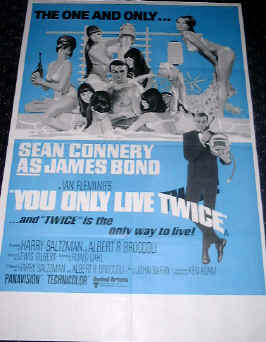 Up ] Dr No Posters ] FRWL posters ] Goldfinger Posters ] Thunderball Posters ] [ You Only Live Twice ] Casino Royale ] OHMSS Posters ] Diamonds Are Forever ] Live & Let Die ] Golden Gun posters ] The Spy Who Loved Me ] Moonraker Posters ] For Your Eyes Only ] Octopussy Posters ] Never Say Never Again ] A View to a Kill ] Living Daylights ] License to Kill ] Goldeneye ] Tomorrow Never Dies ] TWINE Posters ] Double Bills ] Promotional Posters ]