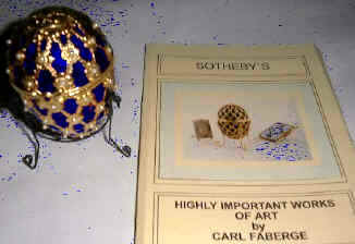 Russian Easter egg by Carl Faberge with Sotheby's brochure as seen in Octopussy |