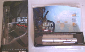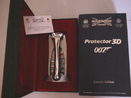 Home ] James Bond Toys ] Buyer BEWARE ] Buying Tips ] BOOKS ] 007 Briefcases ] Cards & Candy ] Die-Cast Cars ] DOLLS ] Bond Games ] Gilbert Toys ] Guns ] Imperial Toys ] Jewellery ] KITS ] Miscellaneous ] Kit Cars ] Other Cars ] Slot Cars ] Tin Cars ] Multiple Toymakers ] Paper & Ephemera ] Pens & Odds ] Posters ] Props ] [ 007 Shaving ] Records ] Revlon ] SD Studios ] Shoes & Clothing ] Spystuff ] Voit Scuba Gear ] Volcano Playset ] Watches & Clocks ] Walki Talkies ] DAD Aston Pedal Car ] Shop & Counter Displays ] Trevor Boddington ] Meet Nick ]