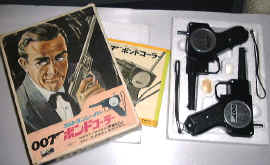 [ James Bond Toys ] [ Buyer BEWARE ] [ Buying Tips ] [ BOOKS ] [ 007 Briefcases ] [ Cards & Candy ] [ Die-Cast Cars ] [ DOLLS ] [ Bond Games ] [ Gilbert Toys ] [ Guns ] [ Imperial Toys ] [ Jewellery ] [ KITS ] [ Miscellaneous ] [ Kit Cars ] [ Other Cars ] [ Slot Cars ] [ Tin Cars ] [ Multiple Toymakers ] [ Paper & Ephemera ] [ Pens & Odds ] [ Posters ] [ Props ] [ 007 Shaving ] [ Records ] [ Revlon ] [ SD Studios ] [ Shoes & Clothing ] [ Spystuff ] [ Voit Scuba Gear ] [ Volcano Playset ] [ Watches & Clocks ] [ Walki Talkies ] [ DAD Aston Pedal Car ] [ Shop & Counter Displays ] [ Trevor Boddington ] [ Meet Nick ]